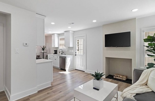 The home offers two bedrooms with queen beds. There is a dedicated office space in the third bedroom. The kitchen is fully stocked with everything needed to cook meals. The living room is spacious and has a 50 inch smart TV. The bathroom is stocked with towels and soaps. There is a fire pit in the backyard and a 2 car garage that guest have access to use during their stay.