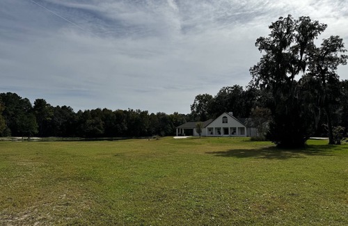 Welcome to our tranquil retreat nestled on a pristine 125-acre property. Immerse yourself in nature as you explore the scenic trails and relax by the sparkling lake. The spacious house boasts a cozy fireplace, perfect for chilly evenings. Unwind on the patio with an outdoor fire pit, creating unforgettable memories under the stars. Indulge in the luxury of freshly remodeled bathrooms and a modern chef's kitchen, reverse osmosis water filtration. Ensuring a comfortable and stylish stay. Escape the ordinary and experience the serenity of this remarkable getaway. Located only 20min from airport JAX and 2 minutes from i95 exit. Within a mile drive from major grocery and restaurants yet uniquely settled in the middle of the woods to offer you that off grid feel. 30amp RV outlet is available on the premises. We open to host events.