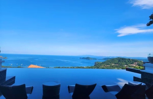 Experience 360° views of volcanoes, mountain ranges, and the Pacific Ocean from this luxurious 15,500 sq. ft. villa situated at the highest elevation in Playa Hermosa in the gated community of Hermosa Heights. With seven elegant suites, Essence accommodates 14 privately or up to 18 guests total.