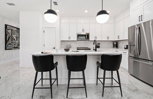 Urban sophistication meets cozy vibes in this super chic 4-bedroom gem on Orlando's International Drive–steps from the best theme parks, attractions, dining, and shopping this epic city has to offer. Set your bags down in one of three delicious king bedrooms, and send the littles off to enjoy the whimsical themed bedroom—where their imaginations will run as wild as the Universal Orlando coasters down the road. Start or end your day at your private pool ft. loungers, a patio table, and more.
