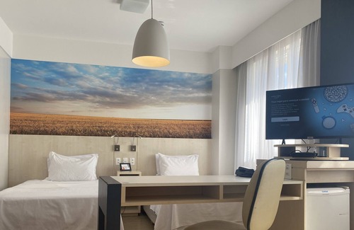 Our accommodation is located in the main avenue of Alphaville, Alameda Rio Negro, close to anything you need, shopping malls, pharmacies, bakeries and local shops. The hotel has a heated pool, fitness center, sauna, valet service and a 24-hours reception.