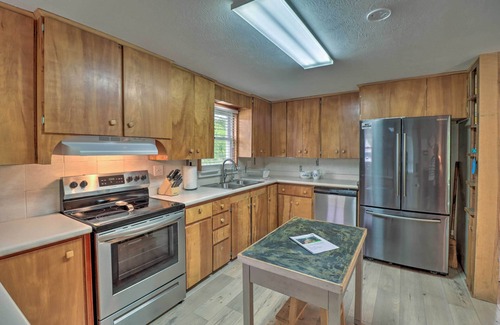 Invite the entire family on your next epic getaway when you book this 4-bedroom, 4-bath vacation rental in Cotter! Primely situated on White River, this cabin offers 2 living rooms, 2 kitchens, and a 2-story deck big enough for your whole crew! Enjoy fishing and kayaking from the comfort of home or opt for a scenic drive to Branson to experience famous attractions. For in-town fun, check out Mountain Home Berry Farm to pick berries for a home-cooked meal in one of the fully equipped kitchens!
