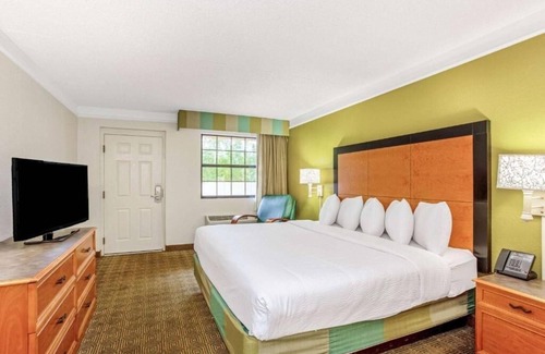 Just minutes from Orlando International Airport, La Quinta Inn offers a convenient and affordable stay with complimentary breakfast and parking. The Deluxe King Room features additional space and a work desk for added comfort. Ideal for business travelers or couples seeking a stress-free stay near the airport.