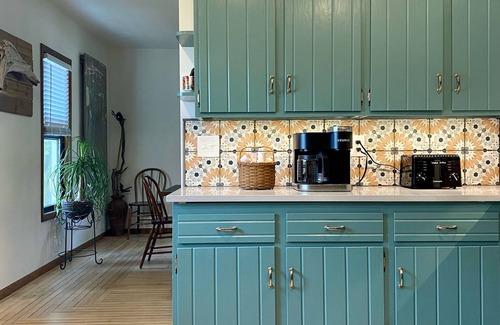 •The kitchen is stocked with pots and pans, cutlery and utensils, plates glasses and wine glasses. We do not provide ice, bit they have bags at the store across the street. Salt pepper and olive oil are provided.