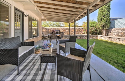 Make El Paso, known for seamlessly blending cultures and traditions, your next travel destination, and book this well-appointed vacation rental as your home-away-from-home. The 3-bedroom, 2-bathroom abode has a modern interior and is perfect for a group of friends looking to get away. Enjoy cool evenings on the covered patio and cook a delicious meal on the grill or in the kitchen. The property is also located near museums, parks, and restaurants, so there is something for everyone to enjoy.