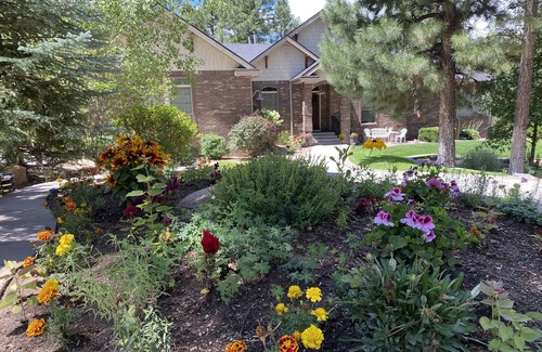 The ultimate getaway for your family or group nestled at the end of a cul de sac deep in the pines of Show Low. This property sitting on 1.2 acres of beautiful Ponderosa Pines has it all! Main level has two masters, additional bedroom & office. The main living space offers spectacular views of the forest where deer, elk, & other wildlife can be seen. Two decks can be accessed from kitchen/dining/living area that overlook the forest. Main living area is furnished with large sectional, wood pellet fireplace, & big screen (65") TV. The adjoining gourmet kitchen is a chef's dream with Viking & Wolf gas stove, griddle and ovens. Gorgeous waterfall island with barstools. Large wood dining table can seat 12. Pamper yourself in the Grand Master Bedroom by enjoying a luxurious chair massage followed by a relaxing soak in the garden tub overlooking the forest or shower in the multi-faucet walk-in oversized shower. Then, let the fun begin downstairs with retro table-style arcade games and Indiana Jones Pinball Machine. Electronic Roland Drum set, Steel Drum & Electric Roland Keyboard add to the excitement. Big Screen (65")TV, dvd player, large popcorn machine, fridge & microwave make this space complete. Your little ones will spend hours of fun in the playroom under the staircase complete with play kitchen, chalkboard and children's books. Downstairs opens up to ground level grass yard available for croquet, cornhole, or other yard games. A hammock awaits you in the forest as you watch for birds & squirrels, or keep an eye on the kids as they enjoy playing in the cool of the pines on the swing set/climbing wall/slide play structure or in the playhouse just their size! Follow the path to the Meditation Garden and spend some time letting the stressors of your life melt away. When it's time for s'mores, you will find a gas powered fire pit overlooking the back yard next to the basketball court. Don't want to miss your work out while vacationing? No worries, the 3 car garage is stocked with free weights & a bench and a TV too, still allowing you to park two cars inside. In the garage you will also find fishing gear, & camping chairs . For your peace of mind, this home contains a emergency back up natural gas powered generator that will automatically engage in the case of a power outage. If you can tear yourself away from this beautiful home, you will enjoying nearby golfing, hiking, fishing, boat rentals, antiquing and exploring in the White Mountains. Visiting in the winter months? Sunrise Ski Resort is an hour away, and there are plenty of sledding areas nearby. There are 4 outside security cameras (front yard, backyard, driveway, basketball court) and Ring doorbell cam.