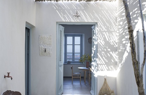 The house itself is a traditional Island “archontiko” lovingly restored and transformed into a modern living space. Original beamed ceilings and a mix of antique furniture and mid 20th c. pieces set the scene for relaxed island living.