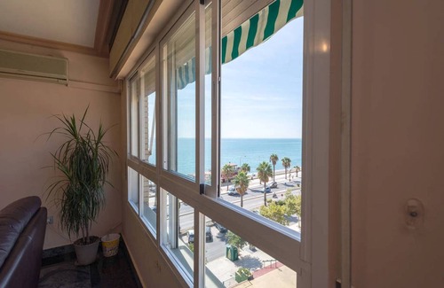 Amplio salón con vistas a la playa y terraza. Pueden contar con televisión, Chromecast, Internet y wi-fi gratuito.