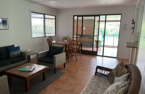 Three Bedrooms contain two queen sized beds, one double bed, and two sets of bunk beds, this accommodates from 2 to 10 people. Max 6 adults +4 children (no camping on property). Linen NOT supplied. You are required to provide your own sheets (top & bottom sheets please - no sleeping bags allowed), pillows and towels. Quilts and blankets are supplied for your convenience.