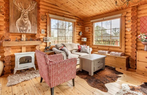 The open plan living area is beautifully furnished and includes a living area with Smart television (with Netflix login) and electric wood burner as well as a dining table with seating for up to 6 when extended. You might even be tempted out onto the balcony for some alfresco dining overlooking the lake! You’ll also find a convenient workspace with office chair in the open plan space.