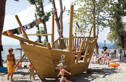 The family-friendly accommodation is located in the holiday village of Cisano, which lies on the beautiful eastern shore of Lake Garda, somewhat north of the old Venetian port of Lazise. Look forward to the long pebble and sandy beach and tell your children about the many playgrounds: there are several! In July and August, the animation team organizes a colorful program, which includes windsurfing, children's disco, treasure hunt and free tennis and swimming lessons. The holiday village also has beautiful pool facilities with slides and water features, restaurants, bar, a mini-market, wifi, animation and a mini club for younger guests. Of course, the facility also offers many sports facilities, be it on land or on the lake. In addition, the holiday village is only a few minutes away from the many leisure and water parks such as Gardaland, Movieland and Caneva. The modern mobile home Happy Premium Suite / 3167) is bright and friendly and offers space for max. 7 people. The property consists of a master bedroom with a double bed and 2 bedrooms with 2 single beds each. In the living area, a sofa bed offers another sleeping space. The well-equipped kitchen is in the living area and is equipped with a fridge (small freezer), 4-burner gas stove, sink, cutlery, dishes, pots, microwave and filter coffee machine. The living area has 2 Bluetooth speakers and a USB port. In addition, mosquito nets are attached to the bedroom and living room windows. The bathroom has a sink, a shower, a mirror and a hair dryer, the toilet is separate. The semi-covered wooden terrace with table, chairs, 2 loungers / deckchairs, a hanging chair and a charcoal or gas grill or an electric grill plate invites you to relax in comfort while the children can let off steam in the playground or by the pool. Air conditioning is available (for a fee). Travel cot, high chair, bed linen and towels are also available for a fee (please reserve when booking). On request, you can book half or full board on site. A parking space is included. Travel time from ital. Limit approx. 2h. Note: If you need more than one accommodation, this is usually possible with us, since we have several objects of the same house type. ARRIVAL DAY + STAY DURATION from 07/07/04 09. 2020 the arrival and departure day is Saturday or Wednesday (only bookable on a weekly basis). In the period from April 25th to 8th 05. 2020 / 30. 05.-12. 06. 2020 the minimum stay is 7 nights (daily arrival possible). In the remaining time, the minimum stay is 3 nights (daily arrival possible). Note: If for any reason you are unable to arrive on the day of arrival, check-in is also possible the following day (please notify us prior to arrival). The same applies if you want to leave earlier. Departure is also possible here the day before. However, the rental period / rental price specified for booking remains unchanged. The holiday village borders directly on Lake Garda and is one of the few holiday resorts on Lake Garda to have its own large sandy beach. This makes the beach the ideal place to relax, sunbathe, read a book or relax while the children build sand castles or let off steam in the water. If you want to quench your hunger or thirst on the beach, you can have yourself served at the bar. You can also rent canoes, bicycles and pedal boats. Here you will find two family pools and a children's pool with great bathing fun for the whole family. Slides and water games make children's hearts beat faster. The whirlpool guarantees complete relaxation for the adult guests. Afterwards you can relax on the large sun terrace in one of the many deck chairs. A well-stocked kiosk provides refreshments. LOCATION The holiday village borders directly on the beach and is therefore ideal for families with children. The location is also ideal for trips to the beautiful villages of Lazise and Bardolino. FAMILY FRIENDLY With the animation team, the little guests can experience new adventures every day. You can choose what you like best, be it tennis, swimming, aerobics or canoe courses, soccer and volleyball tournaments, water skiing, mini golf, beach games or dance evenings. But if you prefer to take it easy, it is a good idea to sunbathe on one of the swimming pools or on the private beach. LEISURE AND SPORT The holiday village has a sports field / soccer field, tennis court, table tennis and of course many sports facilities by the pool and lake. SHOPPING In the mini market you will find fresh fruits and vegetables, bread, cold cuts, cheese and other groceries. The complex also has a bazaar with tobacco products, newspapers, children's toys, beach clothes, souvenirs and camping items. CATERING The apartment has a well-equipped kitchen with dishes, cutlery, pots, microwave, filter coffee machine and fridge with freezer. Shops are also nearby. Of course, you also have the opportunity to indulge in one of the two restaurants within the resort. The diverse Italian cuisine is waiting for you!PETS Pets are NOT allowed. SPECIAL In the high season free bus transfer to the Gardaland amusement park and the opportunity to practice paraflying. The final cleaning is to be done by the tenant. Cleaning utensils such as brooms, mops etc. are available. The accommodations are checked and thus the cleanliness is ensured. Any complaints will be charged at EUR 50. If desired, high chairs and travel cots must be ordered when booking (for a fee according to the information in the additional costs) or must be reported at least 1 week before arrival (later orders cannot be guaranteed). LOCATION AND SURROUNDINGS Cisano di Bardolino lies on the eastern shore of Lake Garda between Bardolino and Lazise. To the south of the village, the olive oil museum "Museo dell’Olio", where you can also buy a lot of culinary delights, invites you to a visit. The historic church of Santa Maria di Cisano with its well-preserved Lombard jewelry panels is also worth a visit. Every Monday there is a weekly market in Cisano, which invite