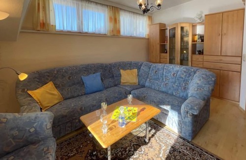 "Fill", 4-room apartment 90 m2 on 2nd floor, south facing position. Spacious and bright, partly with sloping ceilings: large living room with satellite TV (flat screen), DVD and electric shutters. Exit to the balcony. 1 large double bedroom with 1 double bed (1 x 180 cm, length 200 cm). Exit to the terrace. 1 room with 2 beds and electric shutters. 1 double bedroom with 1 french bed (1 x 180 cm, length 200 cm). Large kitchen-/living room (oven, dishwasher, 4 ceramic glass hob hotplates, toaster, kettle, microwave, freezer, electric coffee machine) with dining nook. Exit to the balcony. Bathroom, sep. WC. Underfloor heating. Wooden floors. Balcony, south facing position, terrace, north facing position. Terrace furniture, balcony furniture, box-room. Beautiful view of the mountains and the countryside. Facilities: children's high chair, baby cot. Internet (WiFi, free). Please note: smoke alarm.