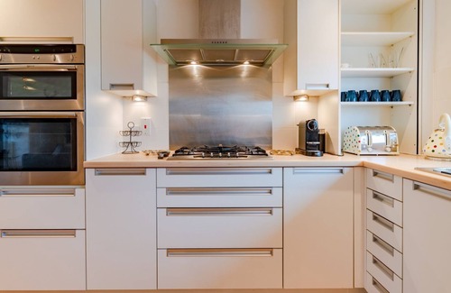 Set over three floors, Firecrest's magnificent open-plan living area is the hub of the home and all centered around its finely crafted woodburner, which has a knack for bringing everyone together in one place. After putting your phone on airplane mode, settle down on one of two comfortable sofas, clink a glass and enjoy nibbles to the ambient sound of the crackling fire. When tummies rumble, prepare dinner in the well-equipped kitchen that overlooks the tennis courts while the kids have fun drawing on the chalkboard. Make sure to place a few bottles in the spacious wine fridge before choosing to dine either inside or al fresco where there's seating for 10 people. As bellies draw full and eyes tired, slink off for a restorative sleep in one of the four bedrooms located both upstairs, and down on the ground floor, not forgetting to catch a glimpse of the stars from Firecrest's plethora of glass doors and skylights.
