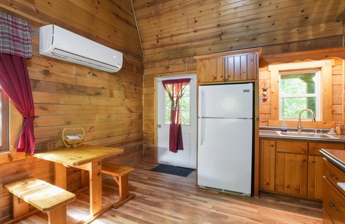 Welcome to Fireflies Hollow, a newly built, secluded cabin nestled on 54 tranquil acres. This charming 1-bedroom, 1-bath retreat comfortably accommodates 2 guests and offers access to a 1-acre pond for fishing, swimming, and paddle boating. Enjoy modern amenities including a hot tub, grill, gas fireplace, 32" TV with DVD player, fast WiFI, and a cozy fire ring. Deer and bird feeders attract local wildlife, enhancing your nature escape. Plus, the cabin is now pet-friendly! AWD/4WD recommended.