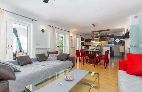 This stylishly furnished, modern holiday flat in Villa Dino near the town of Umag on the turquoise-blue Adriatic offers space for a total of 6+2 people. The villa was built in 2006 and comfortably modernised in 2013. In total it covers a plot of 600 square metres.
