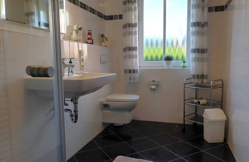 The bright, spacious apartment with internet connection (WiFi) is located on the ground floor of an apartment house and is suitable for 4 people , Hallway, storage room, travel cot and terrace. There is a parking space on the premises for cars. Bicycles can also be parked in the shed.