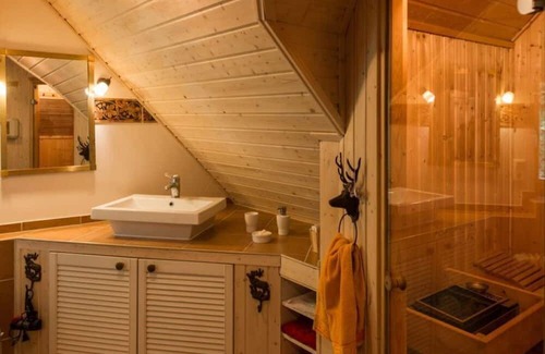 Holiday apartment Wald-Blick has a size of 65 square meters. Sauna integrated in the bathroom, cozy kitchen-living room with seating area, sofa and reading area by the window, kitchen area is equipped with a 4-plate stove with oven, sink, refrigerator, microwave, toaster, kettle, coffee machine, radio/SAT TV. WIRELESS INTERNET ACCESS There is a reading island (bed) under the slant for a cozy reading hour. Large bedroom with a romantic white prince bed (double bed), room has double height, large wardrobe, chest of drawers, bedside tables. The holiday apartment is on the 1st floor. There is also a beautiful shower room with an additional sauna area and a toilet. The view from the windows of the bathroom area is of the treetops of the forest.