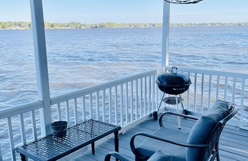 Rustic lake house with wrap around porch extending over the water on main lake. 3 bed/2 bath with extra sleeper sofa. Smart TVs in every room with Live Hulu TV and WiFi. Lots of outside seating, fire pit table, grill, kayaks available.