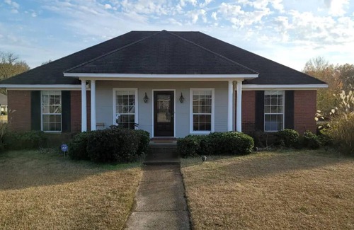 Relax with the whole family at this peaceful place to stay. Spacious outdoor space with covered front and rear lanai, 3 bedrooms with ensuite master, spacious secondary bedrooms, 2 full size bathrooms, large family room with 75" smart tv, eat-in kitchen with stainless steel appliances and board games for the family to enjoy. Explore local activities from live music, Jackson State University football games, Art Museum, Jackson Zoo and more. Enjoy and stay for a while!
