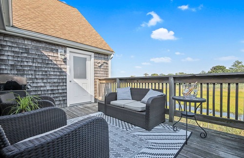 Spacious and clean renovated apartment minutes to the beach and marina! Newly furnished unit and refinished kitchen. This comfortable home offers 2 very large bedrooms with queen beds, large closets and beautiful views. An oversized loft on the second level is great for kids or adults with 4 twin beds. The living room is perfect to relax and read or look out to marsh views. There is a large private deck with seating. Full bathroom with shower. Private entrance.