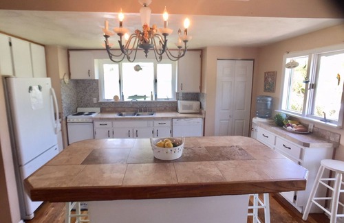 Our two-story home is set up with two separate living quarters with separate entrances. Upstairs has a large open kitchen and living space with two bedrooms, two full baths, and a sleeping loft with two twin mattresses. The pool is shared by both units. If you would like to reserve the entire house, please see listing: