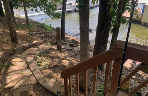 You will certainly enjoy any days you spend at this newly listed 3 bedroom, 2 bath home with vaulted ceilings at the 28 MM. It's a peaceful setting in a light-filled home with tons of huge windows to take in all of the lake views. The top floor has 2 bedrooms with a Jack and Jill bathroom in-between. One bedroom has a king-size bed where you can lay in bed and enjoy the gorgeous lake view or step out on the balcony to take it all in. The other bedroom on this level has a full-size bed with twin bunk beds. Walk down the flight of stairs to the lower level which walks out to the lake. The kitchen is fully stocked and has newer stainless steel appliances. The 3rd bedroom is on this level with a queen bed and attached bathroom (that also opens to the kitchen). There are ceiling fans in all of the bedrooms.