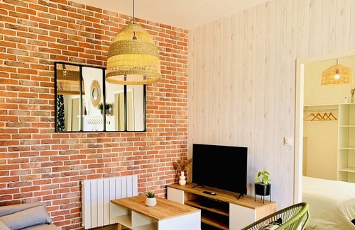 Relax in this quiet and elegant accommodation. You will sleep in a natural setting in an old barn completely renovated in a modern and industrial style. The maisonette is composed of a spacious living room including a functional kitchen, a dining room and a relaxation lounge with TV. The cottage has a large bedroom on the garden side with a view of the sunset, a small bedroom on the courtyard side with a dressing room and a bathroom with shower cubicle and wc.