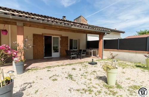 Surrounded by 10 hectares of land, it is also the ideal place of residence for a holiday in the Toulouse region. Nearby (10km): Vignobles et Découvertes territory of Fronton as well as the Calicéo fitness and well-being center. Access the gîte without the car, from Toulouse (journey of approximately 50 min): take metro line B - direction Borderouge (stop "Trois Cocus"), then bus line no. 61 - direction Montberon (stop "Roche ") Small cocooning cottage: - Exterior: private terrace and parking. - Ground floor: living room (140*190cm sofa bed) and kitchen area (3 induction hobs). Shower room/WC. - Floor: mezzanine (1 double bed 160*200cm). Electric heating. Non-smoking accommodation. The house is divided into 4: a year-round rental and the owners' private part, adjoining the gîte; 4 guest rooms complete this old farm. The swimming pool is to be shared with guests of the guest rooms and the owners. You have a private parking space in front of the gîte.