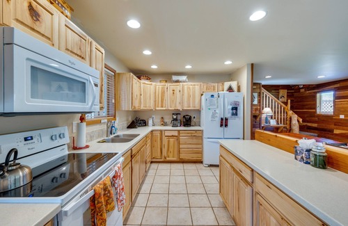 This rural residence boasts 1,920 square feet of mountain-themed decor, all handmade woodworking, and plenty of comfortable furnishings throughout! When stomachs start to rumble, head to the fully equipped kitchen to whip up a quick snack to enjoy at the polished breakfast bar.