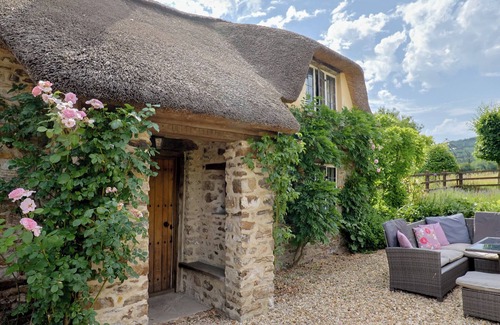 Garden View is a beautiful thatched cottage offering ground floor accommodation within stunning countryside, near Wellington in Somerset. With two bedrooms, a super king-size double (zip/link can be twins on request) and a super king size double with an en-suite wet room this Grade II listed property can sleep four people in two bedrooms. There is also a shower room inside as well as a kitchen/diner and a living room with an electric woodburning effect fire. To the outside is a large garden with a hot tub and a driveway with off-road parking for at least two cars as well as stabling and turnout facilities for anyone travelling with a horse. Garden Views with a hot tub offers an enviable position in the lower slopes of the Blackdown Hills, for anyone looking to escape to the country.Note: This property is connected to the owner's accommodation upstairs but is completely sound proofed. Note: Owners are happy to accept horses as they have stabling and turnout facilities. Please be aware as it is a 16th century house, there are some low ceilings.