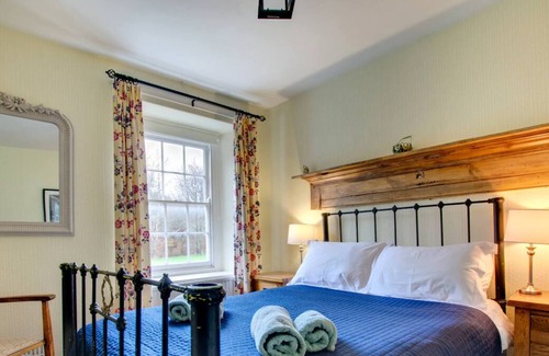 Ger y Wysg Farmhouse is a large, impressive traditional building, situated on the owner's working farm in Talybont-on-Usk, in the heart of Brecon Beacons National Park. There's a comfortable and homely air about the farmhouse with the cosy wood burning stoves, a traditional Aga, flagstone floors, a huge pitch pine kitchen table and charming bedrooms. A perfect place for groups and extended families to holiday together, the pet-friendly farmhouse is spacious and surrounded by large lawned gardens and farmland beyond. The farm is a haven for wildlife and a variety of birds can be seen, particularly by Gilestone Pond, a tranquil spot close by.