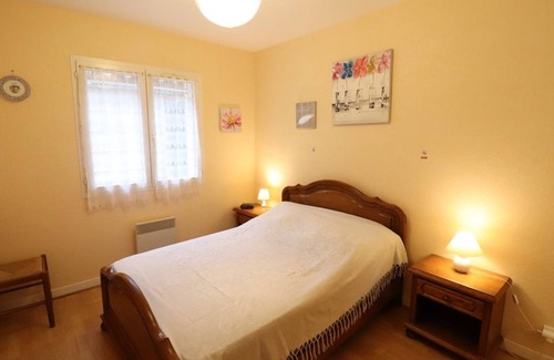 This single-storey gîte has a 200 m² enclosed courtyard with a carport (1 space) and a covered terrace with garden furniture and barbecue. Living room with fireplace with insert (free wood), wifi internet access and flat screen TV, fitted kitchen, 3 bedrooms with 1 double bed (beds made on arrival), bathroom, separate toilet. Electric heating and heat pump with reversible air conditioning included. Prices all charges included.