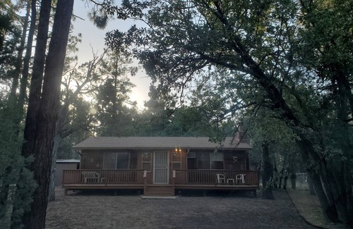 Escape the heat and retreat to Goldilocks cozy cabin in the Pines. This quaint cabin is located in Lakeside, AZ. Conveniently nestled between Show Low and Pinetop. This cabin has a secluded feel and is just minutes from all the conveniences and adventures you could imagine in the White Mountains. A little back story: This cabin has recently obtained new owners so if you have seen it listed here before or have even had the pleasure of staying previously, it’s still the same 5 star rated cabin, but with new owners. Actually, we, the new owners, stayed here when it was still listed as a vacation rental under the old owners, 2 years ago. We loved it so much we decided to buy it when it came up for sale. Now, we want to continue to share the love we found for our little cabin in the pines with all of you!