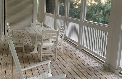 The large screened-in porch is an extension of your living space while on the island and is accessible from every room. It is a great place to spend time with family and friends, relax, and enjoy the ocean breezes.