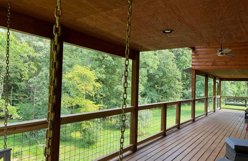 The Grandview Getaway has families in mind so there's plenty of activates to keep the kiddos busy while the adults relax on the porch swing overlooking 5 acres of woods and wildlife. The cabin both serene and private while only 20 minutes from all that downtown Nashville and Columbus have to offer. With our spacious, open floor plan, six bedrooms and walkout hot tub, there's plenty of room to connect, unwind and create memories together.