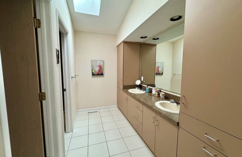 LOWER LEVEL BATHROOMS: There is a spacious guest half bath located just down the hall from the living area, and a full bathroom just across the hall with a jack and jill sink and rain shower. You’ll have access to luxurious shampoo, conditioner, and body wash in the full bath, along with depuffing eye masks.