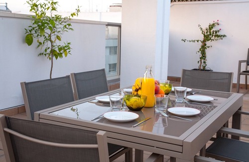 At the top there is a large private terrace furnished with dining table and solarium area with stunning views of the avenue.