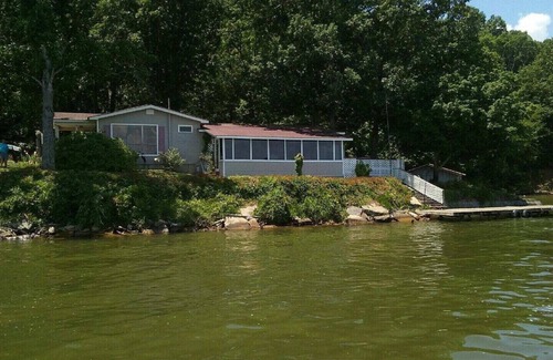 Cabin is very private and is located on open water with a pier. The water at the pier is approximately 8 feet at full pool.