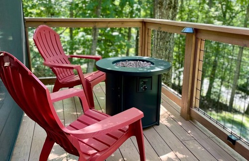 Outside the kitchen is the screened deck and sun deck. There is a gas heater on the screened deck and a firepit, as well as a gas grill, on the sun deck. A family only needs to bring their food and drinks for a fun getaway trip.