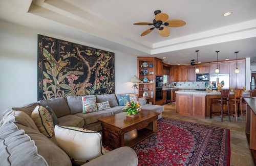 This five-bedroom paradise is beautifully decorated with one-of-a-kind artwork created by the owner. Lush landscapes, ocean scenes, and tastefully done Kauai photos will keep you busy for hours as you wander room by room to see the next piece of art.