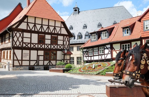 Child friendly resort "Hasseröder Ferienpark". 145 houses in the resort. In the district of Hasserode 3.5 km from the centre of Wernigerode, 25 km from the centre of Braunlage, 25 km from the centre of Bad Harzburg, on a slope. For shared use: property with lawn and plants, indoor pool (seasonal availability: 01.Jan. - 31.Dec.). Slide, table tennis, basketball, children's playground. In the complex: reception, restaurant, sauna, bowling (extra). Billiard table, playroom, shopping facilities, washing machine, tumble dryer (for shared use, extra). Breakfast possible (extra). Central parking spaces. Supermarket 2 km, bus stop 500 m, railway station "Wernigerode" 4 km. Walking paths from the house 100 m. Please note: childminding in the season (included).