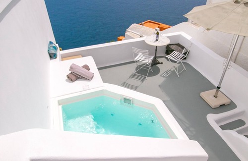 A luxury 18 square meters room with a private 20 square meters terrace located in the center of the old part of Oia village with breath-taking views over the Caldera cliffs!