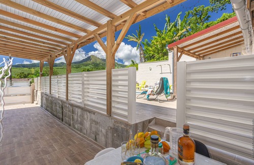 - An 8 m² terrace with clothes line and furniture to enjoy the warm weather and a breathtaking view of Mount Pelée (from the pool), recently listed as a UNESCO World Heritage Site.