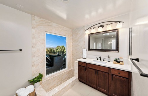 Discover our Mt. Helix oasis: a 4-bedroom hillside haven with dual master suites, pool, and hot tub. Enjoy breathtaking views from every living space, gather around the fire pit, and enjoy outdoor games on over an acre of land. Perfect for families and groups, it's your ultimate escape.