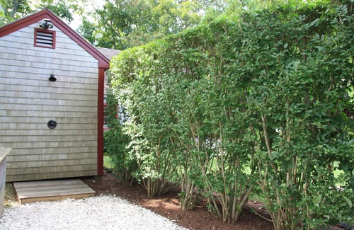 Enjoy a privet surround and the garden's southerly orientation define the outdoor living space, offering warm sunshine. Enjoy mornings on the slate terrace, take time out for sunbathing or an afternoon of reading.Evenings offer stargazers a clarity unique to Nantucket. Birds abound.