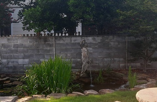 A gorgeous home with many preserved features invites you in! Southern style white rocking chairs! A grand entrance leading to a formal living and dining room. A cozy library with books for any taste! A chef oven! An outdoor table and bench next to a pond with water features and fish!