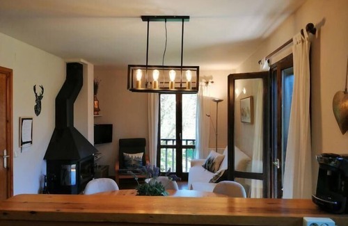 This flat not only offers a comfortable stay with its spaciousness and included amenities, such as a private covered parking space, exclusive use washing machine, and fully equipped kitchen with ceramic hob and Tassimo coffee machine, but it also welcomes your pets, allowing up to three large dogs. It is the ideal place for those looking to combine the natural beauty of the Pyrenees with the comfort and warmth of a home away from home.