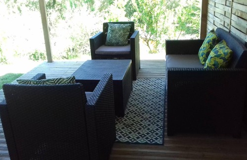 Terrace: sofa, 2 armchairs, table, 6 chairs