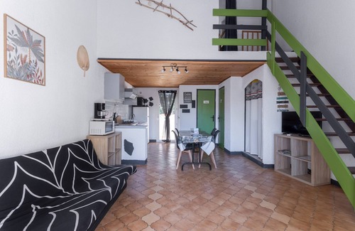 Located in Roquefort-des-Corbières in the heart of the Corbières region, this 42 sqm vacation home accommodates up to 4 guests. You will find 2 bedrooms, 1 bathroom, and a private fully-equipped kitchen. The property features private air conditioning, WiFi, TV, and washing machine. A baby bed is available for families with children.