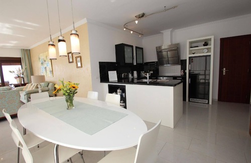This holiday home, the Casa Marbella, boasts a total of three bedrooms with a double bed each (2 x 90 x 200 cm) and two of the bedrooms have an en-suite bathroom with a shower, a toilet and a bidet. The third bathroom offers a shower, a toilet and a bidet. Everything has been very tastefully furnished. The large living(dining room is furnished with an electric fireplace and a sofa bed (135 x 190 cm). The kitchen has a granite bar and is furnished with a 4 burner ceran stove, an oven, a microwave, a large refrigerator with an ice maker, a dishwasher, a water filter, an espresso maker and more. The house offers everything you need for a relaxing and comfortable holiday. There are towels, bedding, beach towels, an iron, a hair dryer, bathrobes etc, as well as satellite television and Wi-Fi.